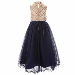 Best Sale 😀 Rare Editions Big 👧 Girls 7-16 Soutache-Bodice/Mesh-Skirted Ballgown Navy 👍