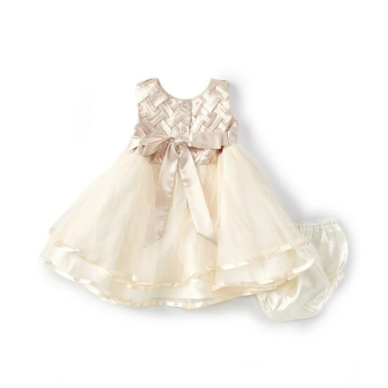 - Tiered mesh double-layer skirt with satin ribbon trim