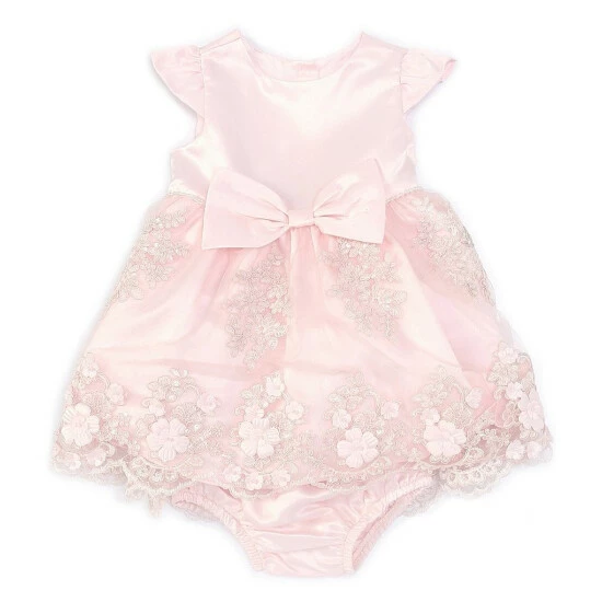 - wide satin ribbon bow trim at the waist