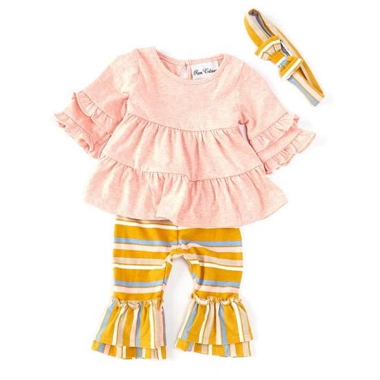 - Rib knit top with ruffle detail, 3/4 sleeve, pullover closure