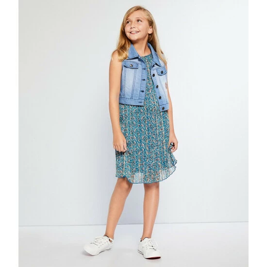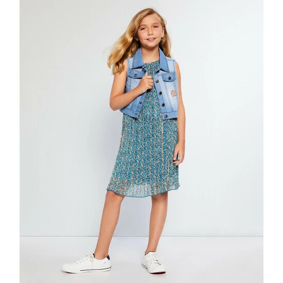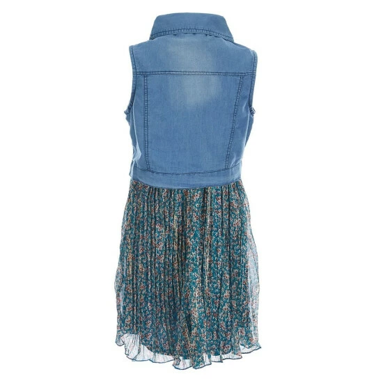 - Vest of cotton/polyester denim; dress of polyester/metallic with polyester lining (exclusive of decoration)