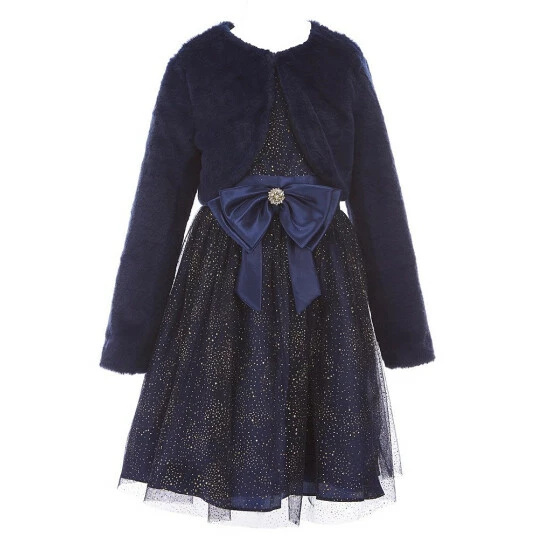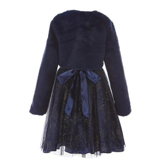 - faux-fur shrug with round neckline, long sleeves and open-front styling