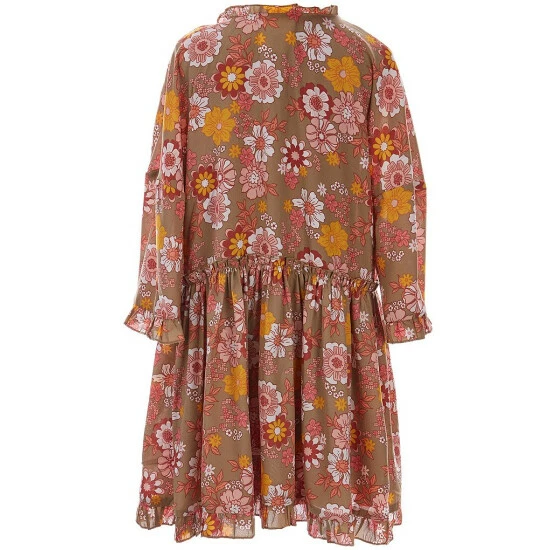 - floral-printed dobby kimono with round neckline and long sleeves, plus ruffled trim and an open front