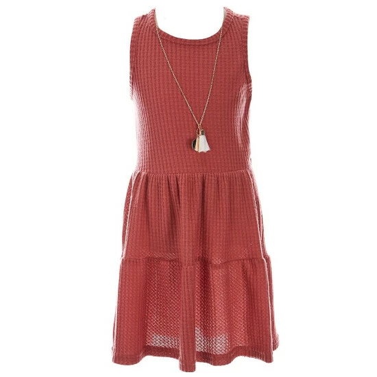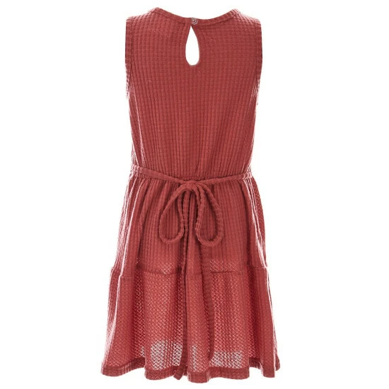 - solid textured-rib-knit dress with round neckline, keyhole back neck and a full, pleated skirt