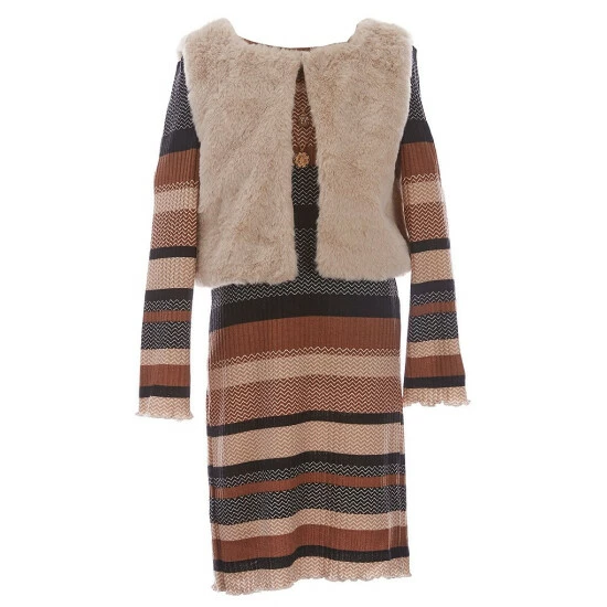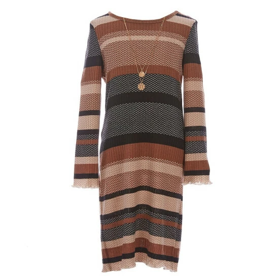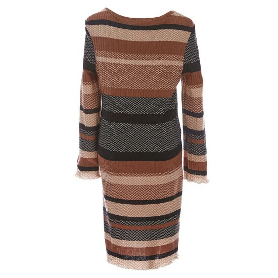 - Knit dress with horizontal stripe pattern, round neckline, long sleeves, A-line silhouette and pullover stylingย