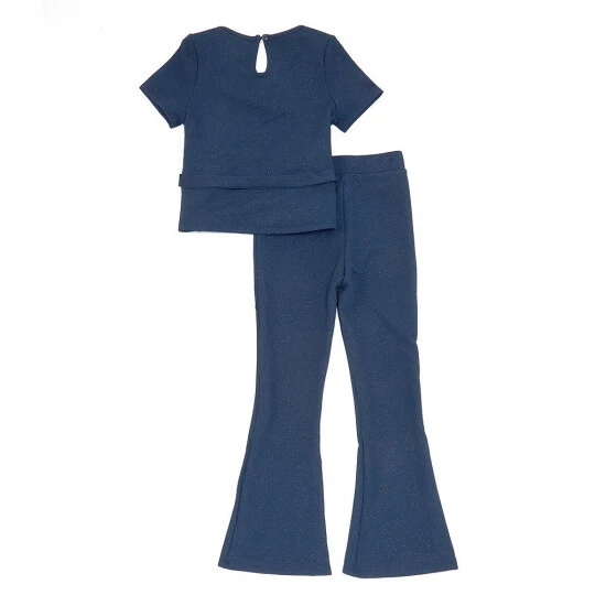 - Solid knit top with round neckline, short sleeves, keyhole, self tie belt