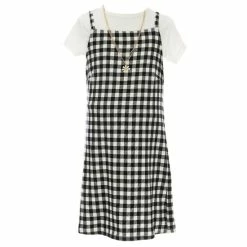 - checked jumper dress with square neckline, sleeveless styling, spaghetti straps and straight skirt, 22#double; length