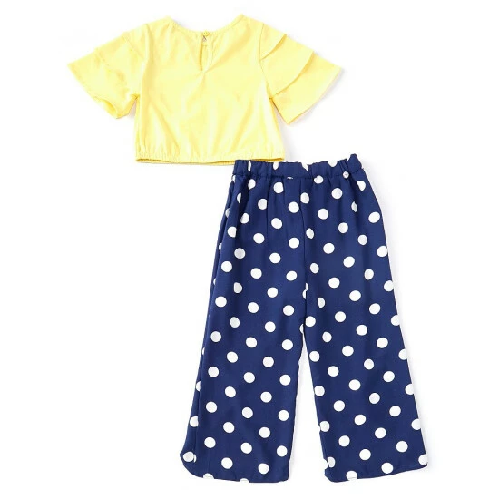 - Dot printed gaucho pants with elasticated waist, wide leg, stretch fabrication and straight hem