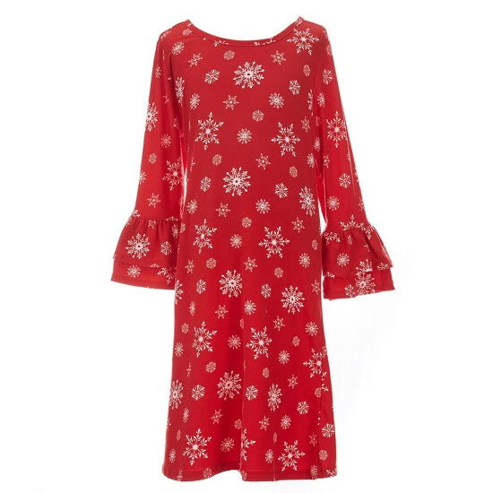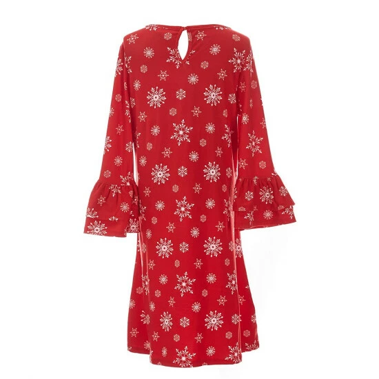 - one Christmas snowflake-printed shift dress with round neckline, bell sleeves and pullover stylings