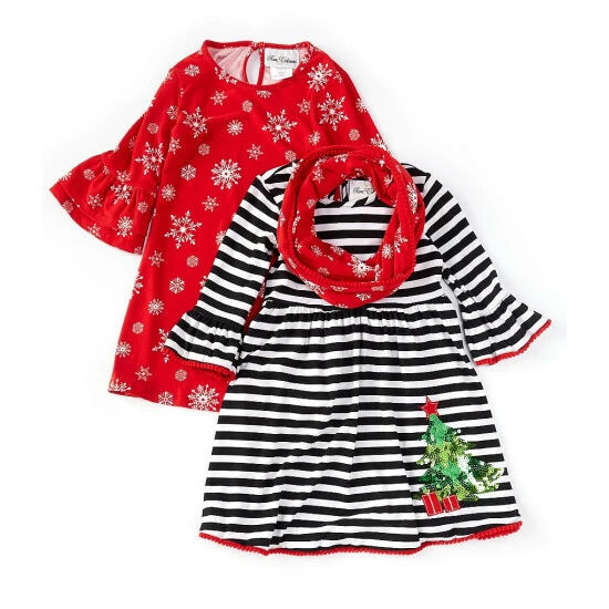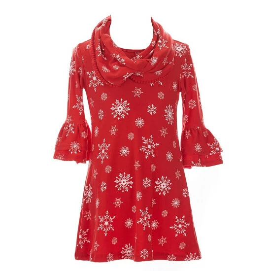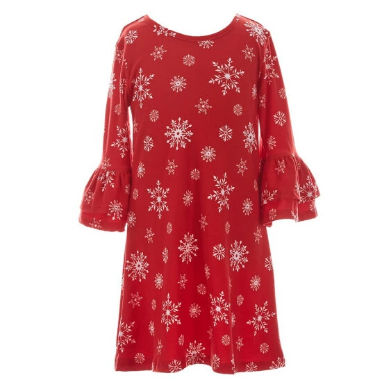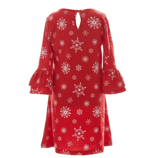 - one Christmas snowflake-printed shift dress with round neckline, bell sleeves and pullover stylings