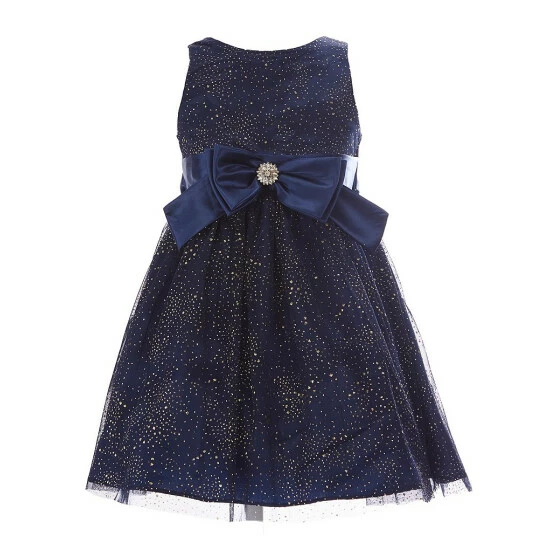 - Foil mesh dress with round neck, sleeveless styling, and satin bowย