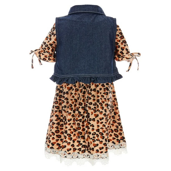 - denim vest with collar, animal-printed flap pockets, button front, embellishments and ruffled hem