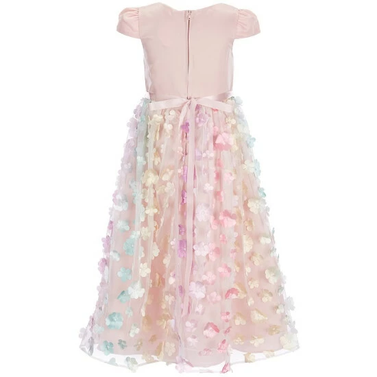 - multicolored 3D flower all over applique on mesh skirt