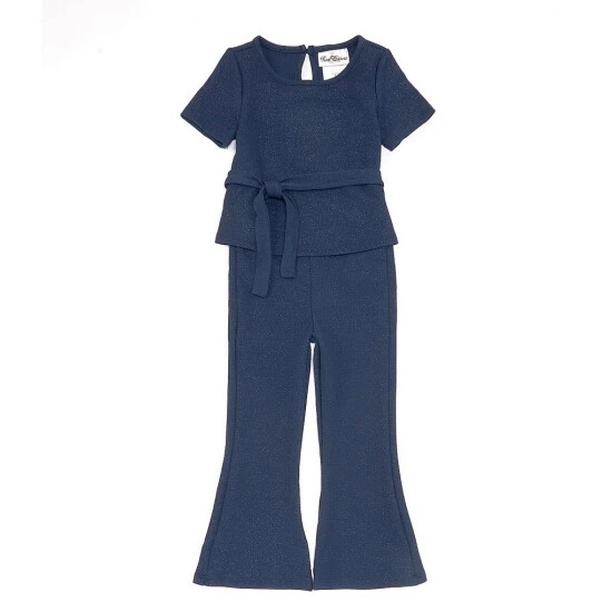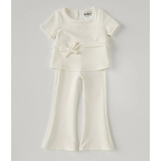 - Short sleeve top with round neckline, front tie, keyhole detailing in the back, and pull over styling